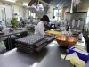 特に大事なのは、生地をオーブンに入れるまでの過程。なるべく早くしないと、命とも言える生地が死んでしまうのです。その日の温度や湿度、作業の手際にも気を配りながら、「はんなまちーず」や「生チョコサンド」を毎日美味しく作っています。作業風景は店内からお客様に見えるようになっています。